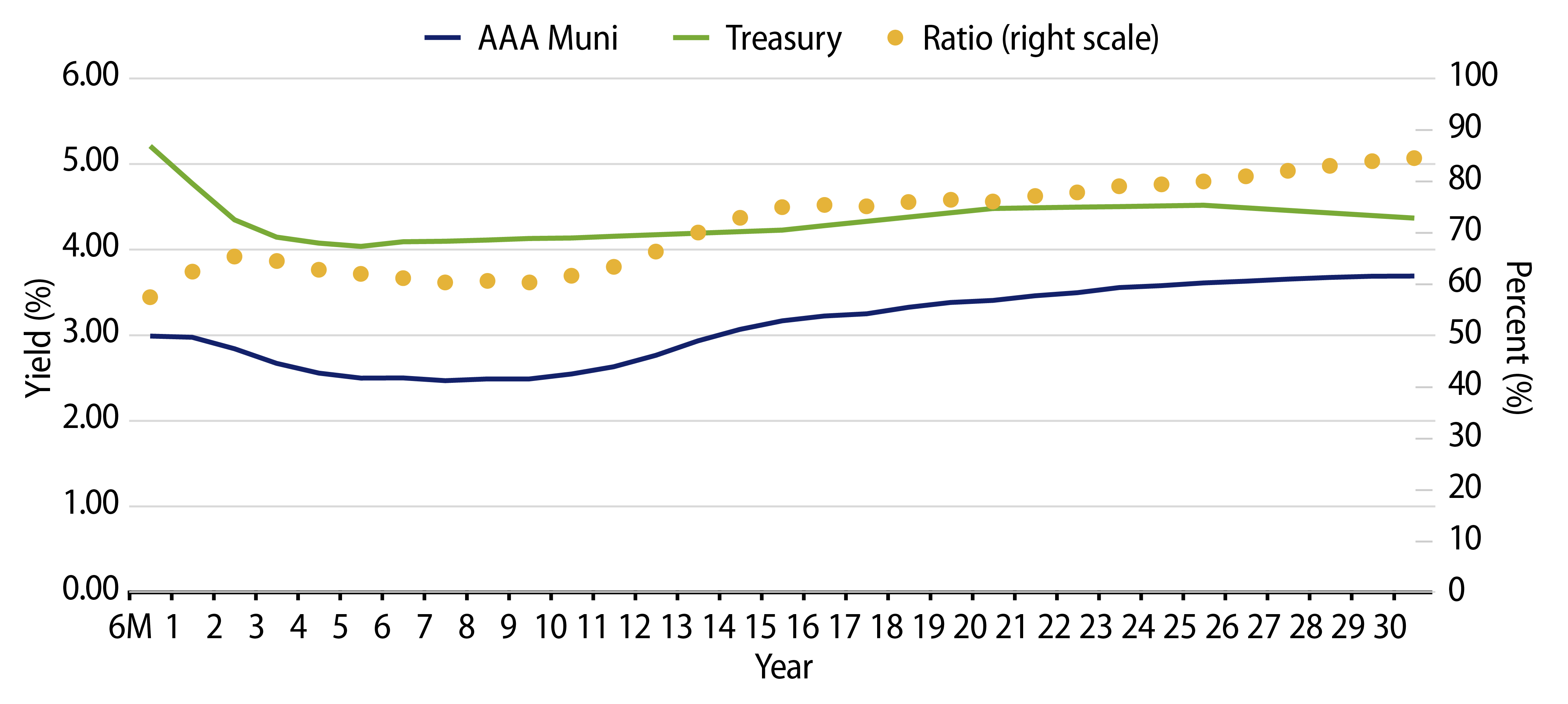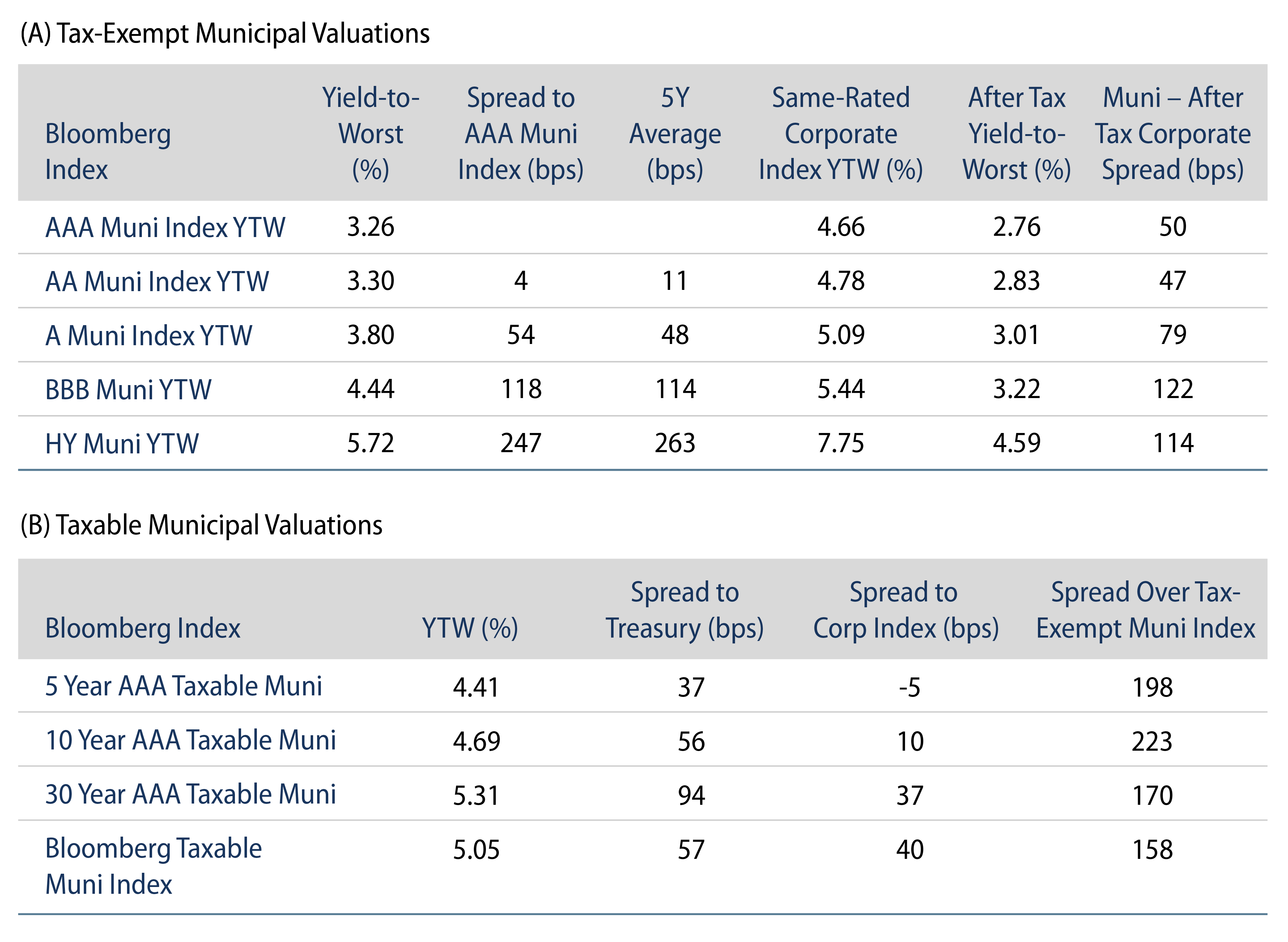 Theme #3: Munis offer attractive after-tax yield pickup versus long Treasuries and corporate credit.